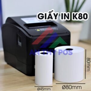 Giấy in bill 80×80 có chiều rộng 80 mm và đường kính cuộn 80 mm, là kích thước phổ biến, tương thích với hầu hết các máy in hóa đơn nhiệt như EPSON, BIXOLON, và STAR.